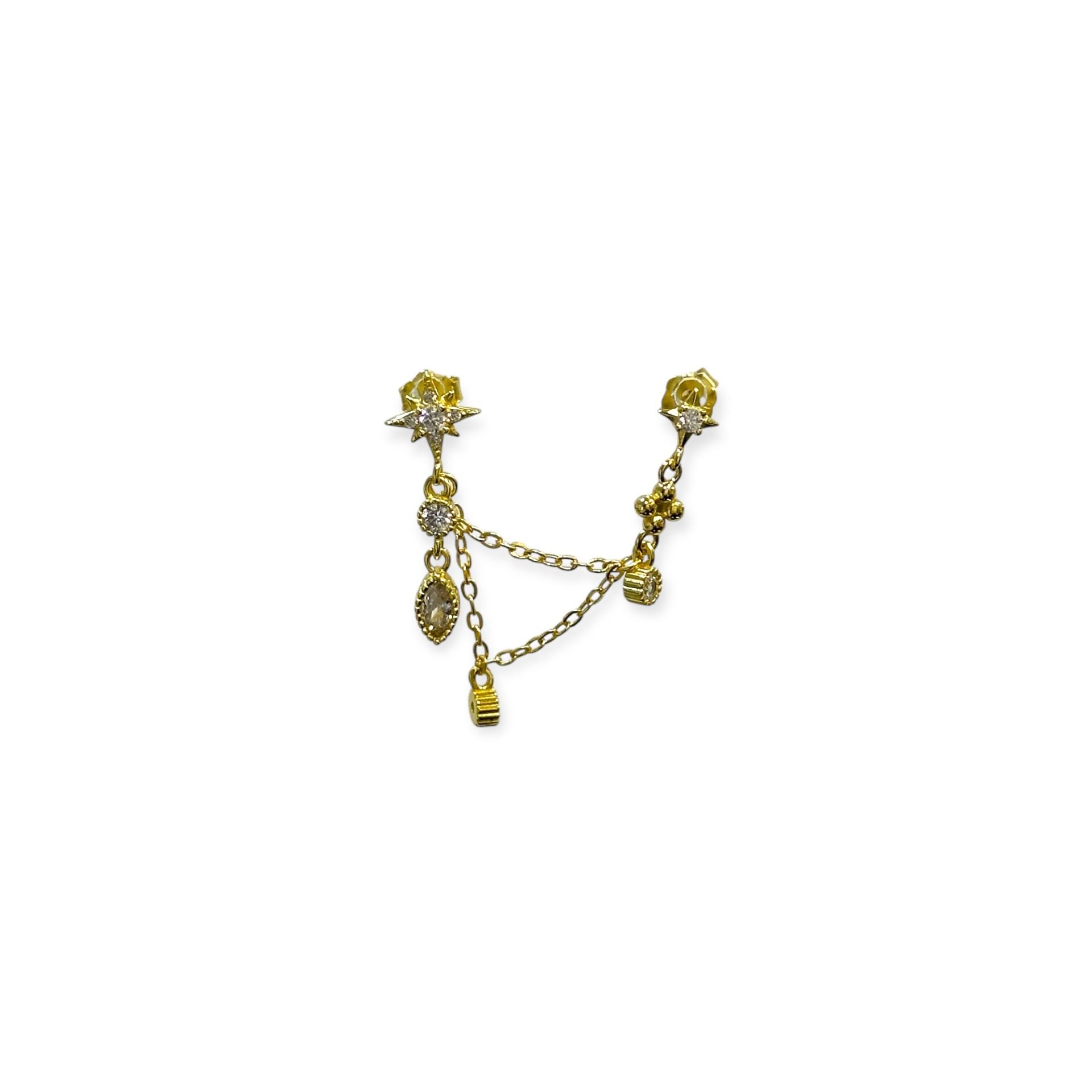 925 Ayar Gümüş İkili Zincirli Kutup Yıldızlı Küpe