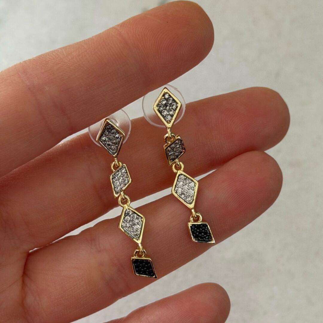 Karons Siyah Taşlı Sallantılı Küpe