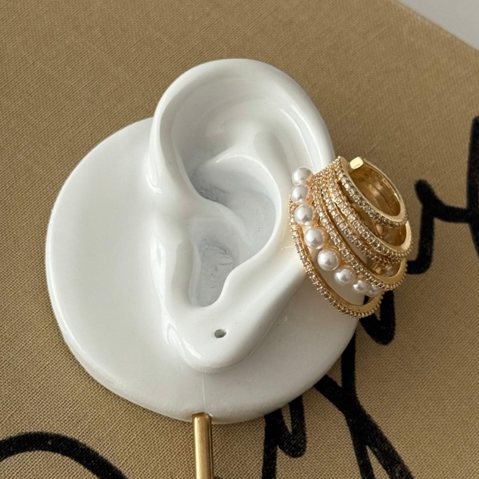Maxi İncili Taşlı Earcuff Kıkırdak Küpe