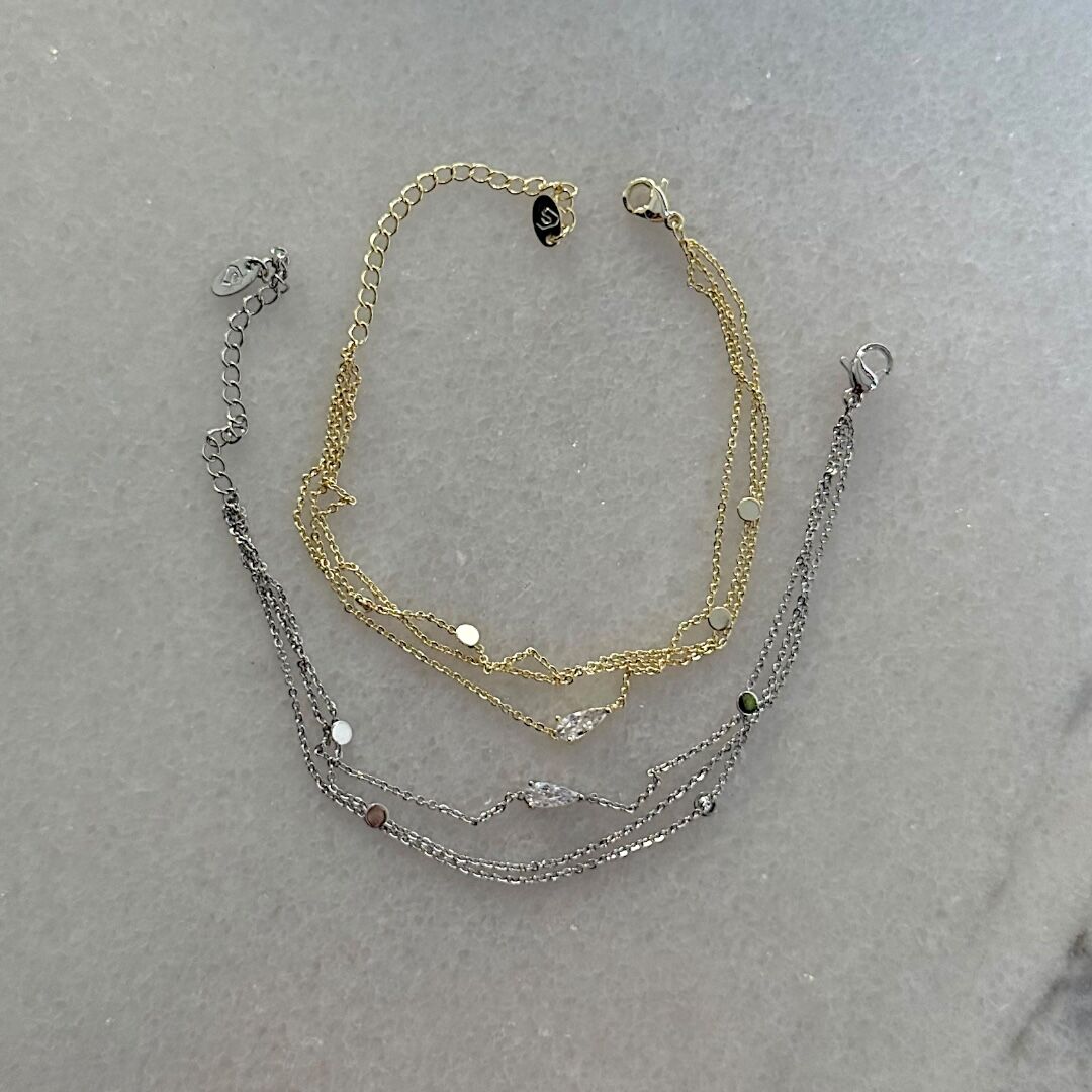 Minimal Damla Taşlı Zincirli İkili Bileklik