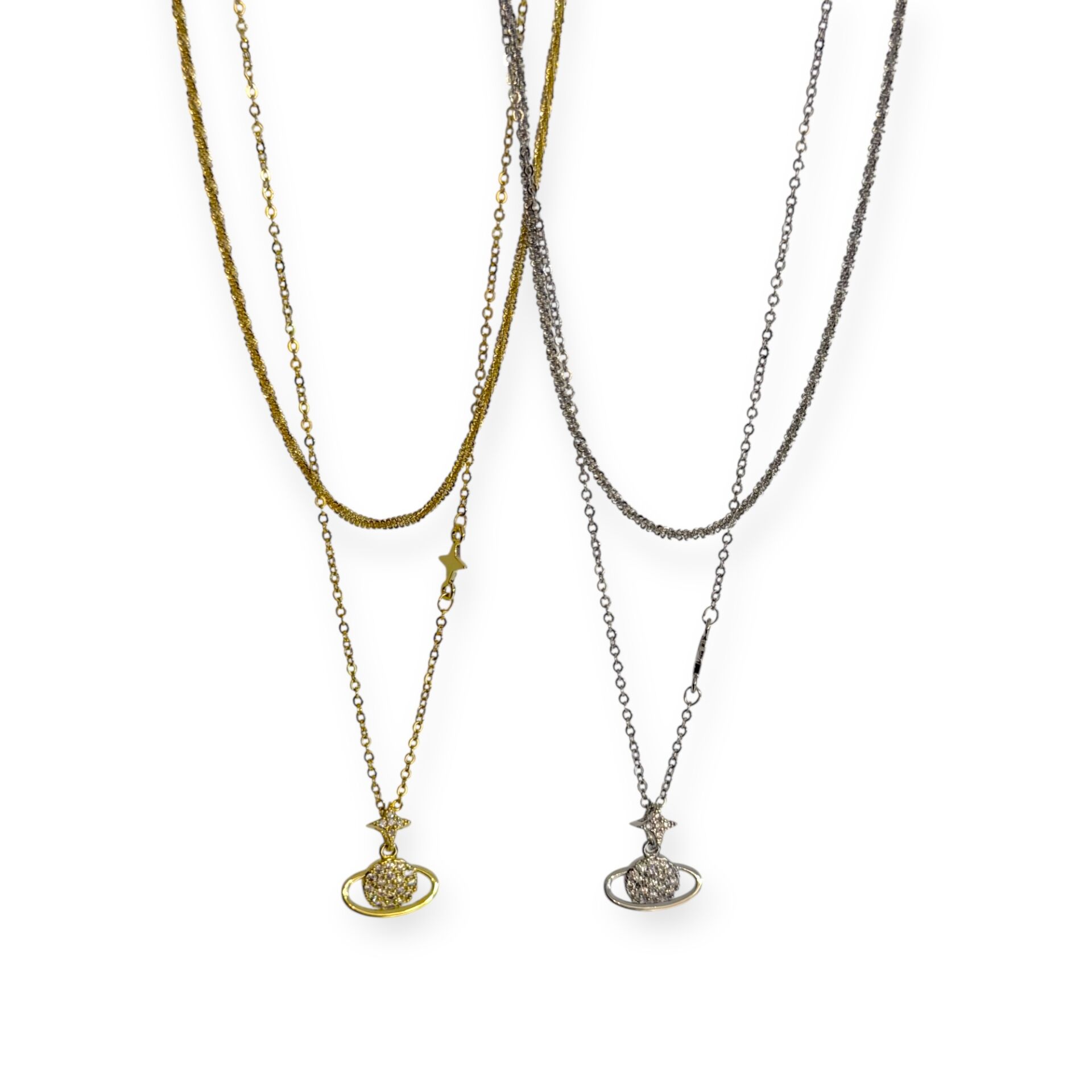 Minimal Satürn İkili Kolye