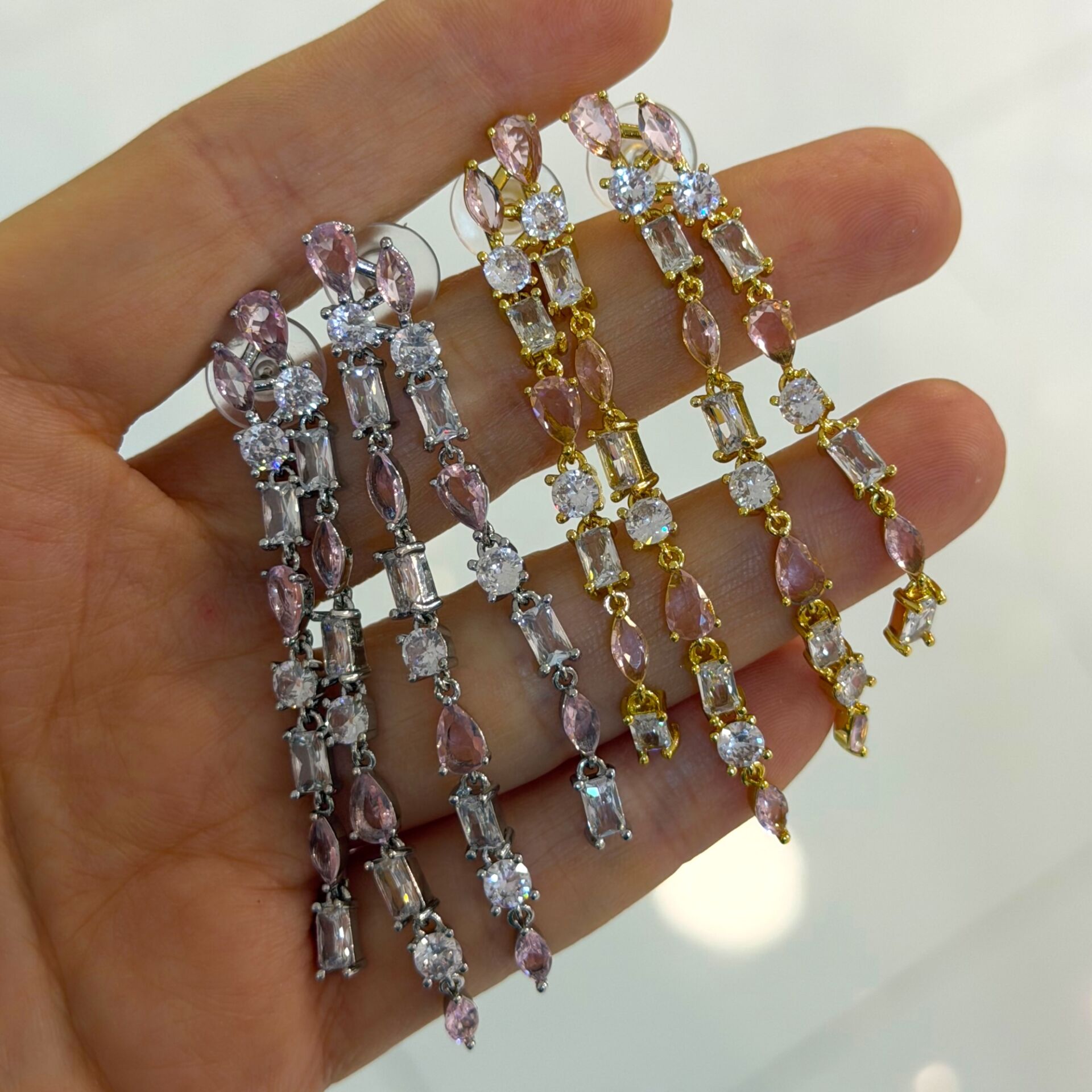 Pembe Baget Taşlı Sallantılı Küpe