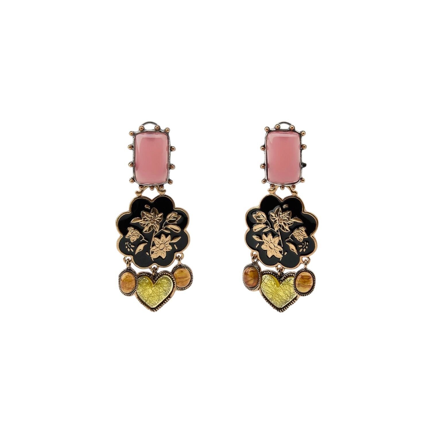 Pembe Siyah Mineli Çiçek Zara Küpe