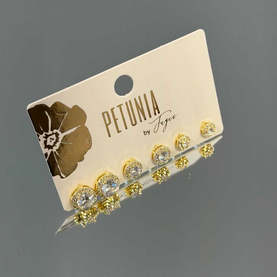 Pırlanta Montür Tek Taş 6’lı Küpe Seti