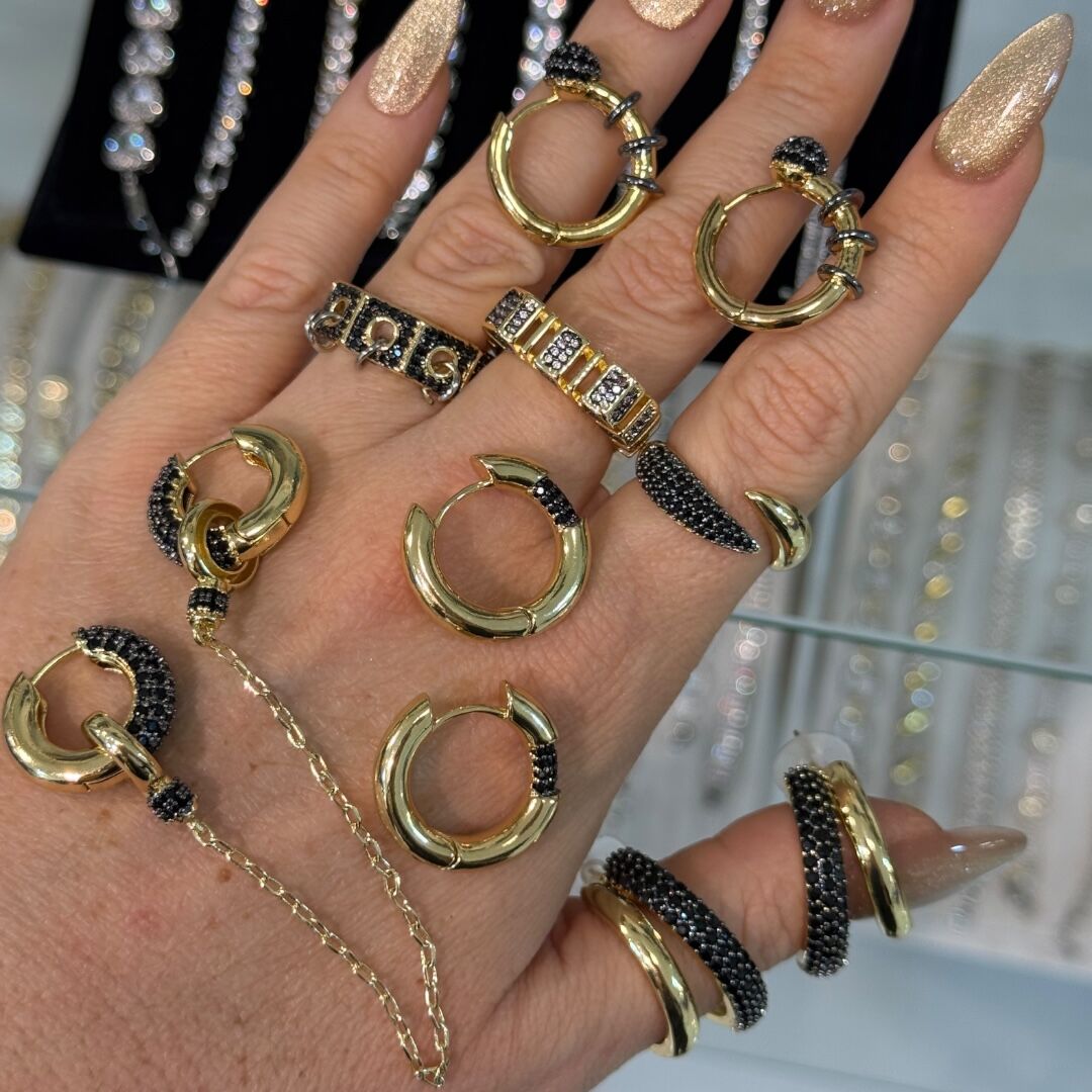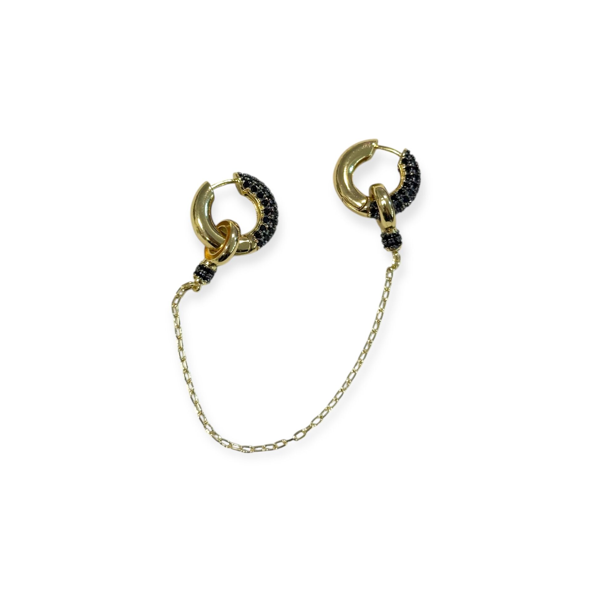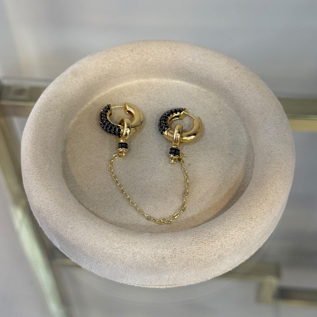 İkili Zincirli Siyah Taşlı Küpe