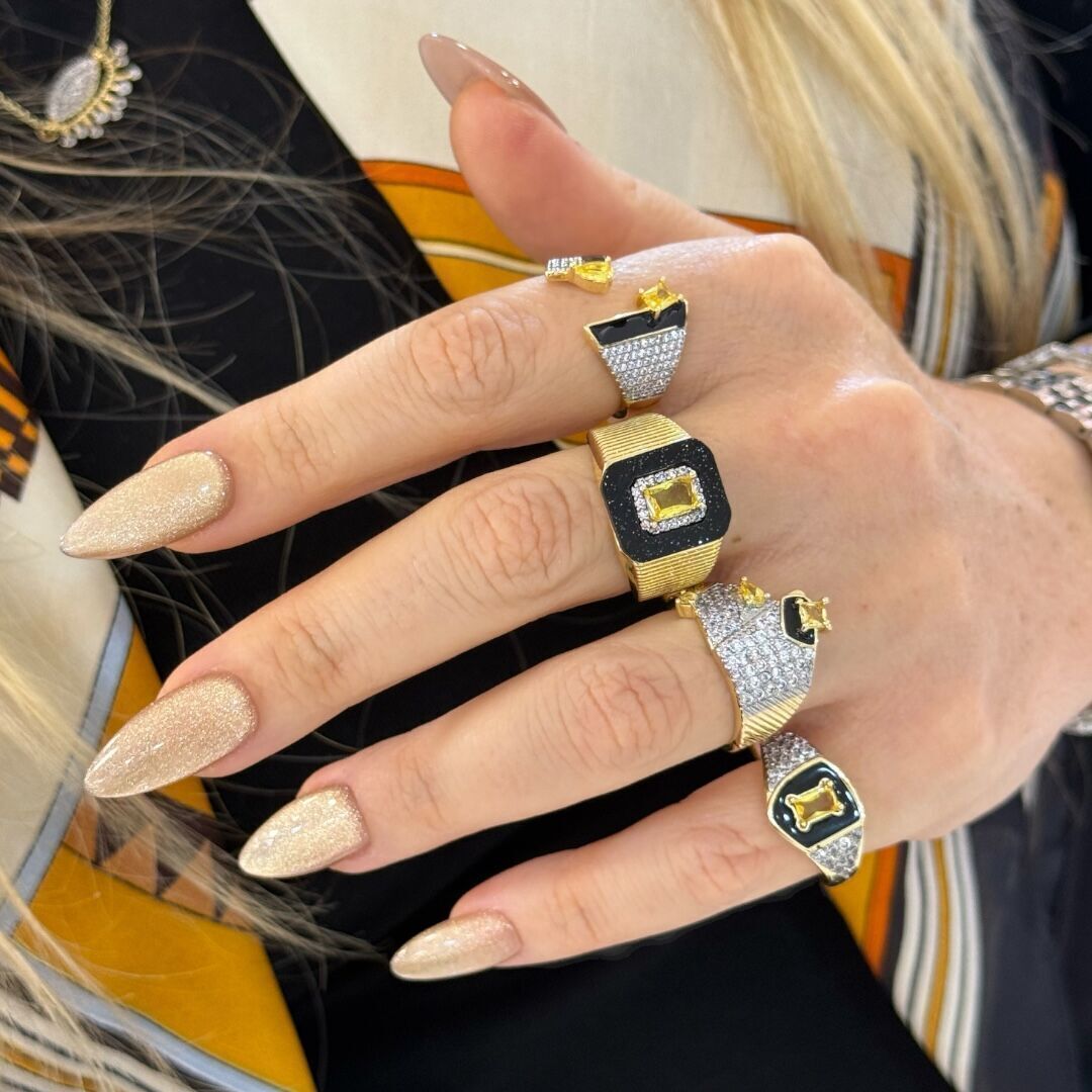 Soho Siyah Mineli Sarı Taşlı Yüzük
