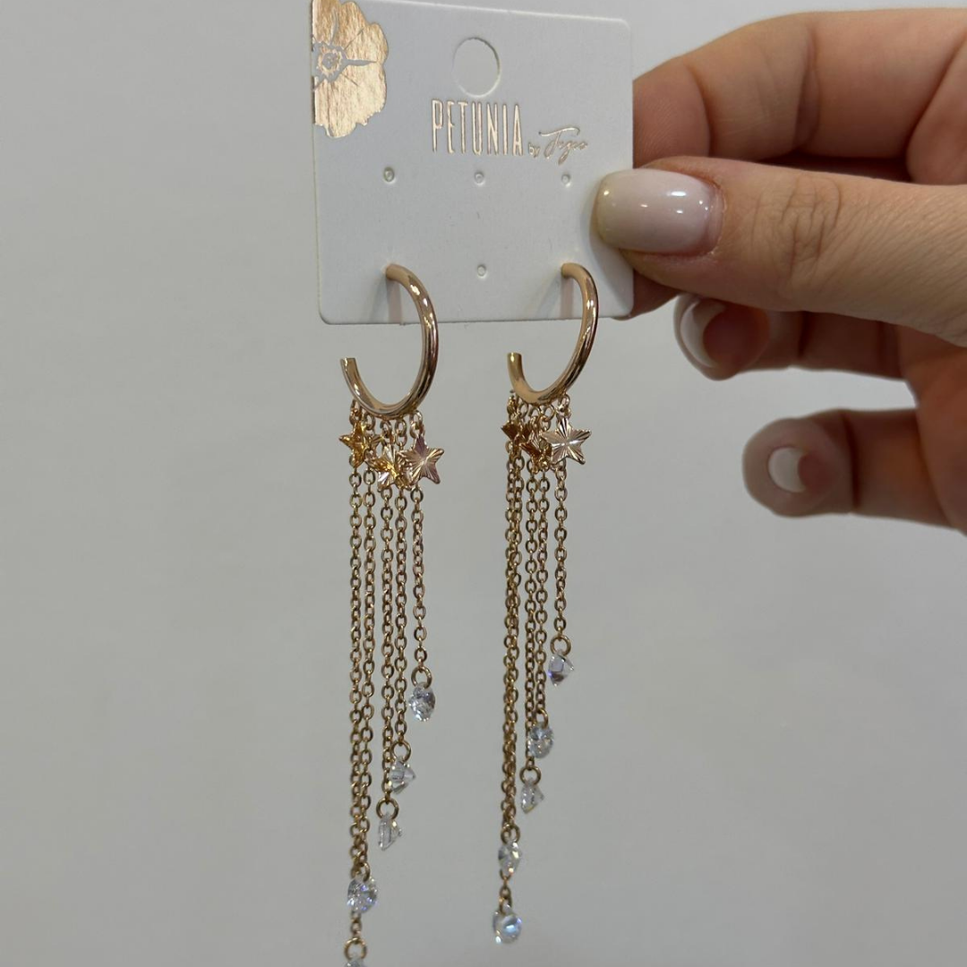 Taşlı Yıldız Sallantılı Çelik Halka Küpe