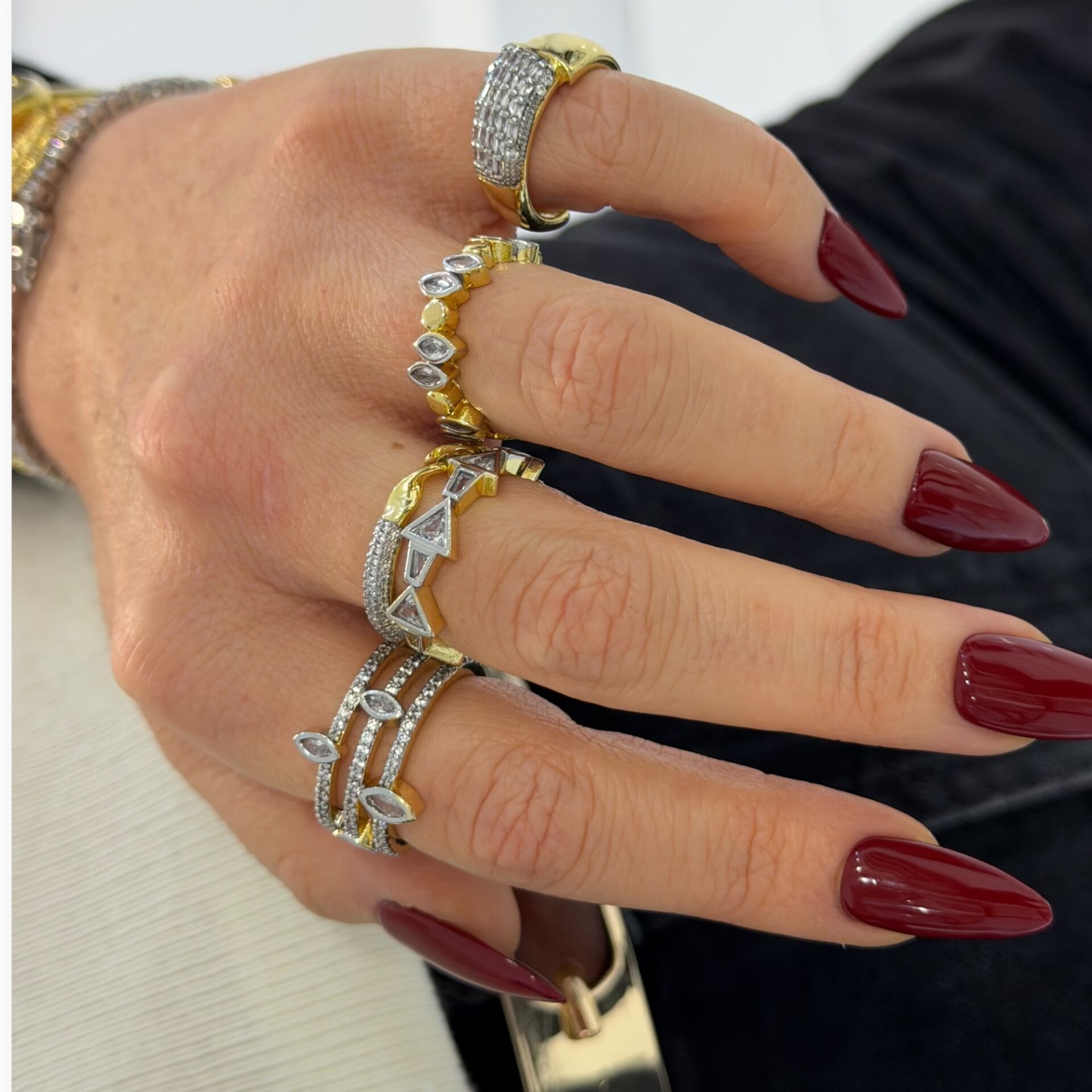 Tırtıklı Yarı Taşlı Mix Yüzük
