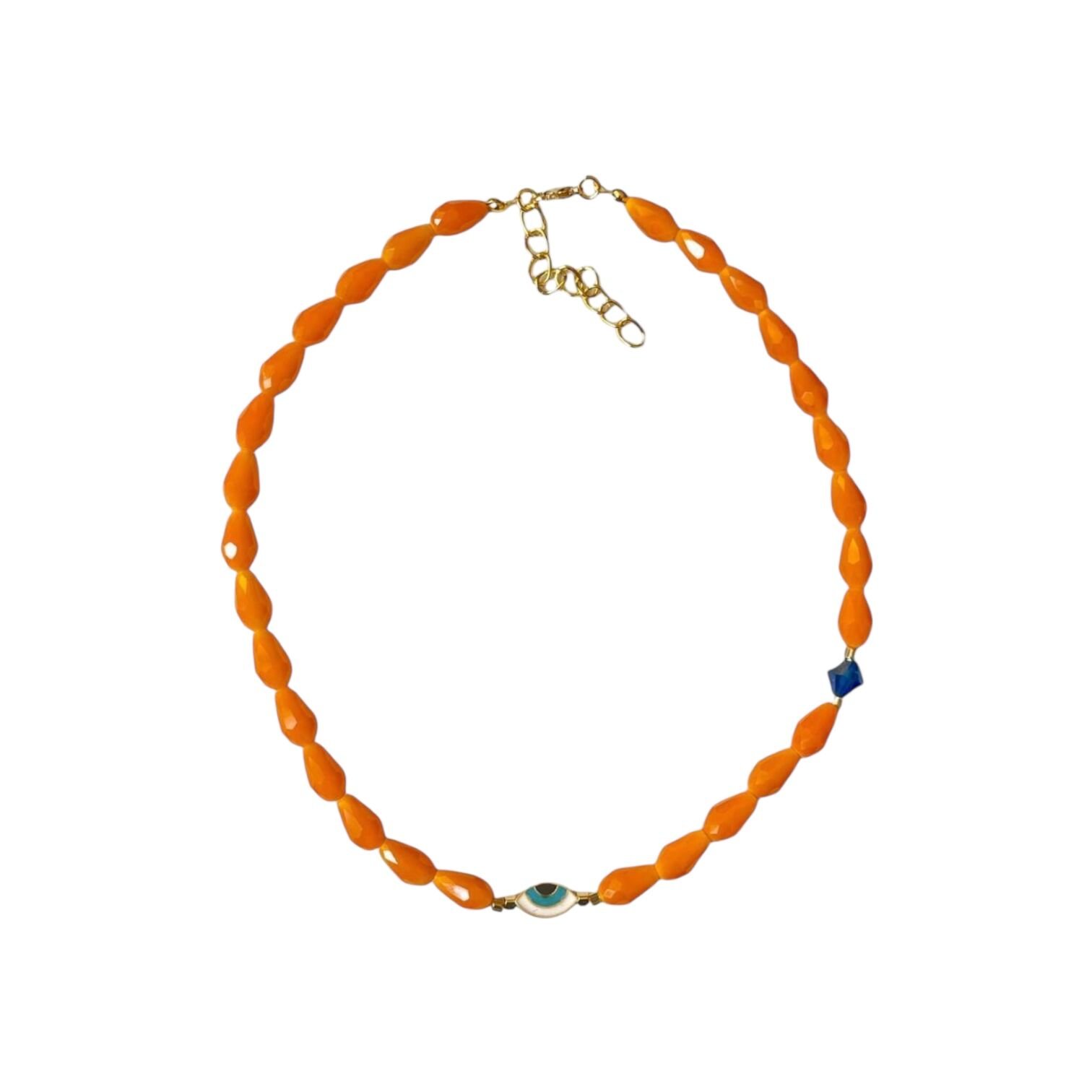 Turuncu Badem Kristal Göz Kolye