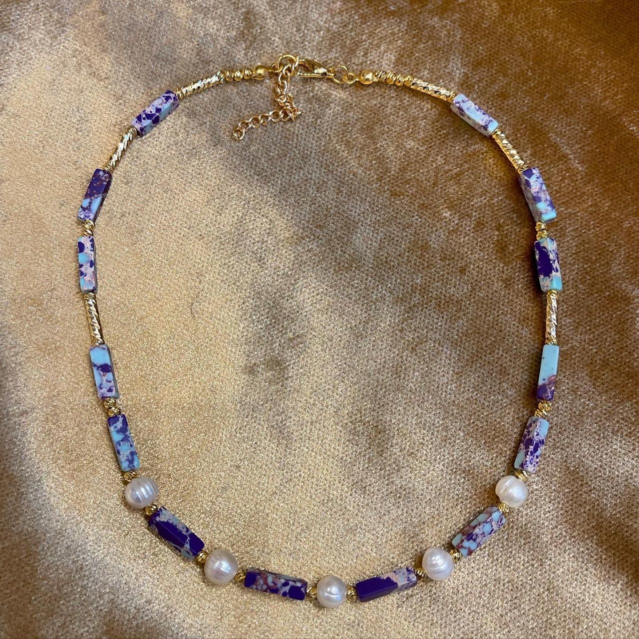 El yapımıdır. Yüksek kaplama içerir. Doğal varasit taşları ve tatlı su incisi ile hazırlanmış, lazer kesim kaplama dorika boncuklar ile birleştirilmiştir. Uzunluğu: 40+5cm’dir.