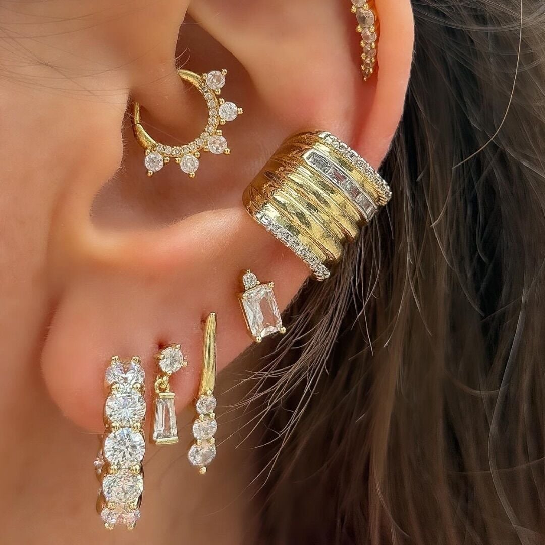 Xuping 14 Ayar Full Taşlı Halka Çelik Küpe