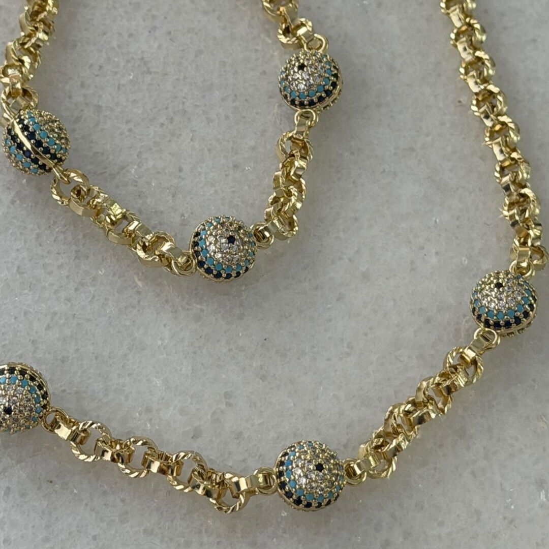 Xuping 14 Ayar Üçlü Nazar Boncuklu Çelik Kolye