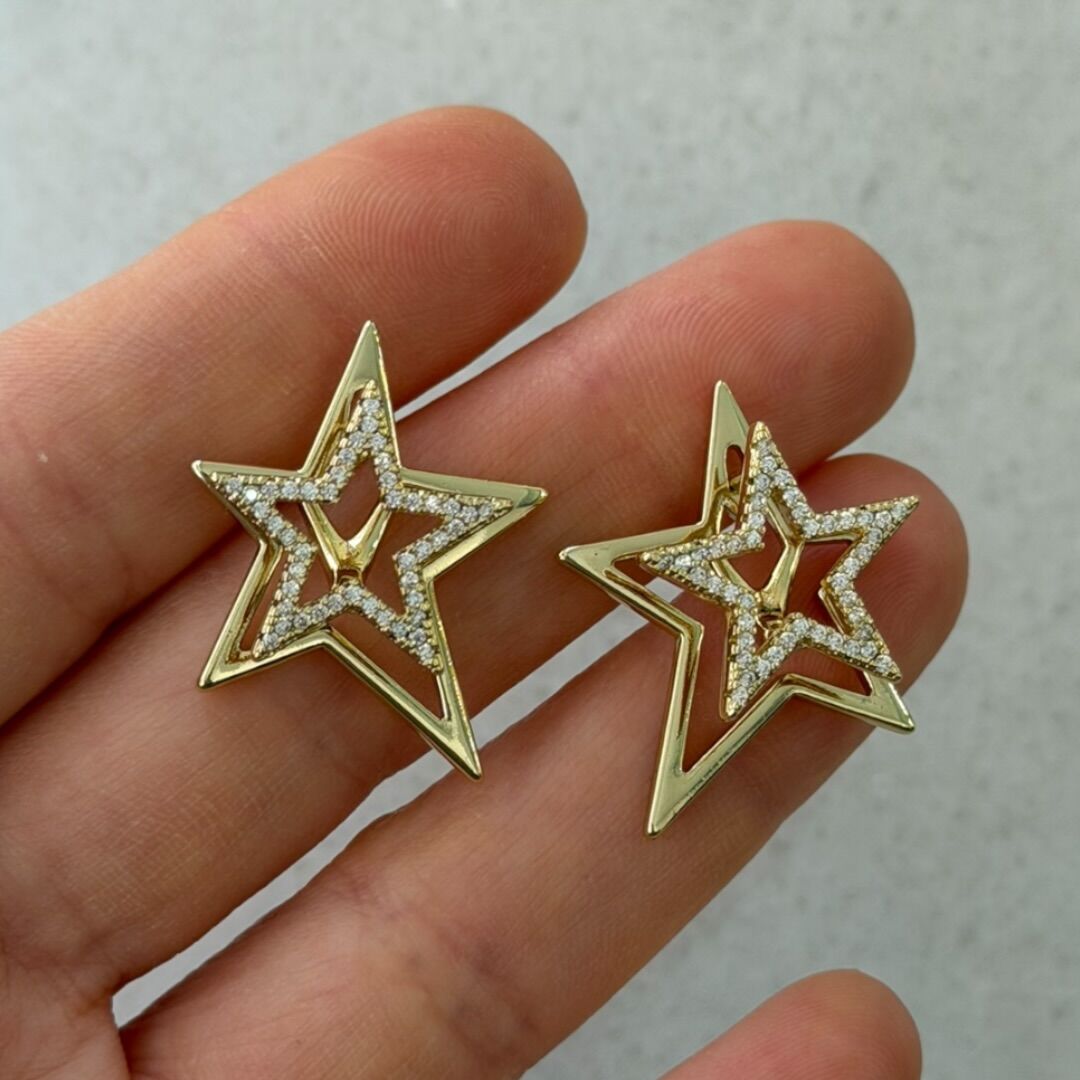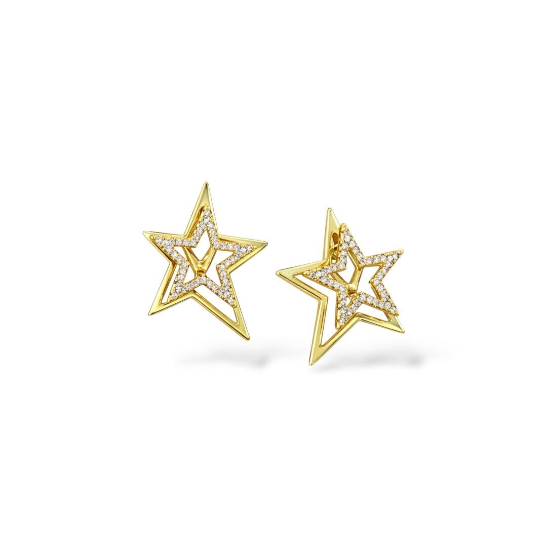 Xuping Duble Yıldız Taşlı Çelik Küpe
